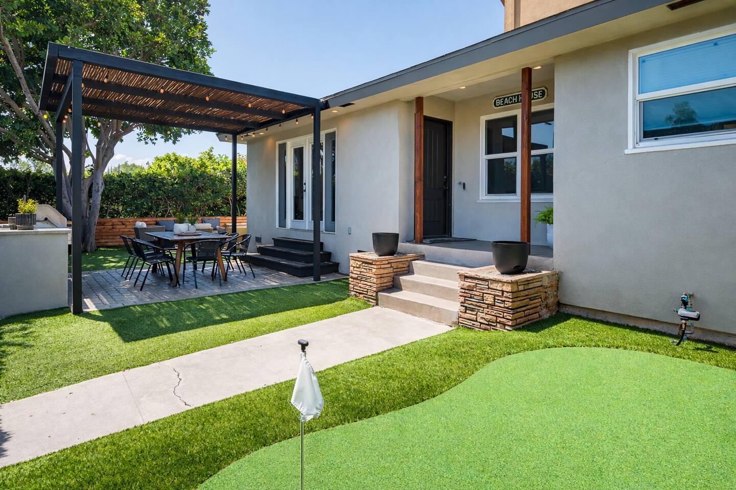 THIS HOME IS COMPLETELY DIALED IN *Walkthrough and aerial video available on YouTube by entering HslnbBNyC6E on the search bar. KITCHEN Modern and open layout with stone counters, white wood cabinetry, brand new stainless kitchen appliances, bar seating. This is a fully stocked kitchen, with everything you need to cook great meals! Comes with: -Plenty of Pots/Pans/Platters -Keurig K-Elite Coffee Maker -Serving utensils -Grilling tongs -Full set of chef knives -Dishwasher, oven, microwave, toaster -Almost any condiment you need! We keep the fridge and pantry stocked with olive oil, butter, salt, pepper, hot sauce, BBQ sauce, mustard, ketchup, mayo, spices etc. FAMILY ROOM / DINNING - 65in 4K TV and SONOS sound system loaded with Cable TV, Netflix, YouTube, Pandora and more - French doors opens up to outdoor living area giving an open layout great for entertainment - Dinning room table with seating 4-6 plus kitchen bar with 3 bar stools OUTDOOR AREA -Outdoor Kitchen with Built in Natural Gas BBQ, Refrigerator, Sink and Grilling Tools - Outdoor dining table with seating for 6 -5 person Hot Tub / Jacuzzi / Spa -Stone Natural Gas Fire Pit with seating, perfect for night gatherings BEDROOMS Room 1: -King Size bed with premium pressure-relieving memory foam and high-density aerated cool gel, combined to provide the essential support and comfort for a deeper night's sleep = Super Comfortable! -A/C – Split unit system which means you can control the temperature independently in each room - 50in 4K TV loaded with Cable TV App, Netflix, YouTube, Pandora and more - Desk / work station - Oak Hardwood flooring, recessed LED dimmable lighting, curtains and beautifully decorated Room 2: -Queen Size bed with premium pressure-relieving memory foam and high-density aerated cool gel, combined to provide the essential support and comfort for a deeper night's sleep = Super Comfortable! -A/C – Split unit system which means you can control the temperature independently in each room - 50in 4K TV loaded with Cable TV App, Netflix, YouTube, Pandora and more -Large French doors to balcony private balcony with lounge chair. Perfect for reading and relaxing - Oak Hardwood flooring, recessed LED dimmable lighting, curtains and beautifully decorated Room 3: Third bedroom is the overflow spot -or- what we call the "bonus room." The largest in the house, it has a private entrance and is not continuous with the main home, as you have to access it by leaving the front or kitchen door (see pics). If you have any questions about it, please ask first before booking! -King Size bed with premium pressure-relieving memory foam and high-density aerated cool gel, combined to provide the essential support and comfort for a deeper night's sleep = Super Comfortable! -A/C – Split unit system which means you can control the temperature independently in each room - 50in 4K TV loaded with Cable TV App, Netflix, YouTube, Pandora and more -Large French doors to balcony private balcony with lounge chair. Perfect for reading and relaxing - Hardwood flooring, LED dimmable lighting and beautifully decorated LAUNDRY -Top of the line Samsung Large Washer and Dryer -Sunbeam Steam Iron, Laundry Soup, Fabric Softer and Iron Table LOCATION The house is located in the heart of Pacific Beach, walking distance to the best it has to offer. Walk to: Beach 3.5 blocks / 0.3 miles or 7 min walk to the sand! Mission Bay 0.3 miles or 7 min walk Famous Garnet Ave – 1 block (where all the best restaurants, shops, groceries store, bars and gyms are located) Within 3 Blocks – Sprouts, Ralphs, 24 Hour Fitness, Crunch, Pacific Beach Library and many more Bike/ Short Drive to: SeaWorld - 3 miles Belmont Park – 2 miles Downtown - 13min drive (9 miles) San Diego Zoo - 15min drive (10 miles) SAN Airport - 13min drive (9 miles)