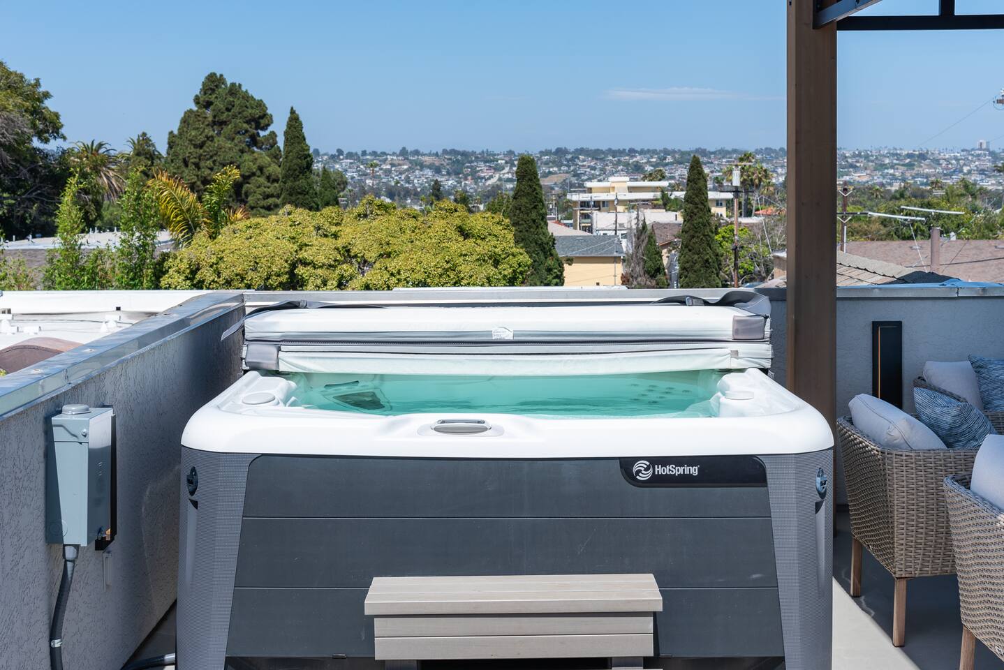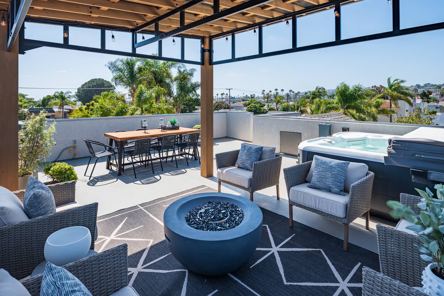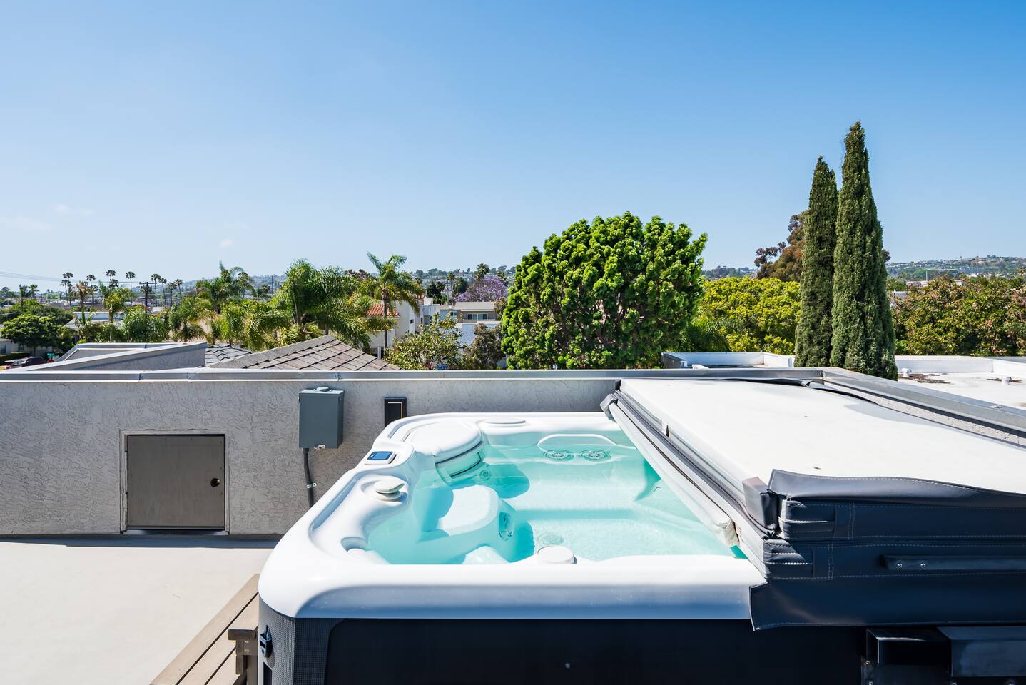 Located in the heart of Pacific Beach, this modern beach house has been fully remodeled and thoughtfully designed for your ultimate comfort and entertainment. *Private Rooftop Retreat w/BBQ, 6 Person Hot Tub, Fire Pit *AC *Voice Controlled Sound System, 4K TVs in every room *Beautiful bathrooms *Bikes, boards, beach towels and toys *Walk to coffee, yoga & gyms, dining, entertainment, shopping *Dedicated Parking Enjoy the blend of modern amenities and beachside relaxation in this vacation home