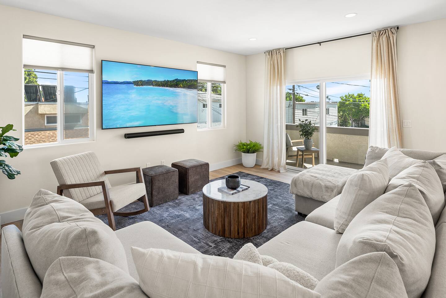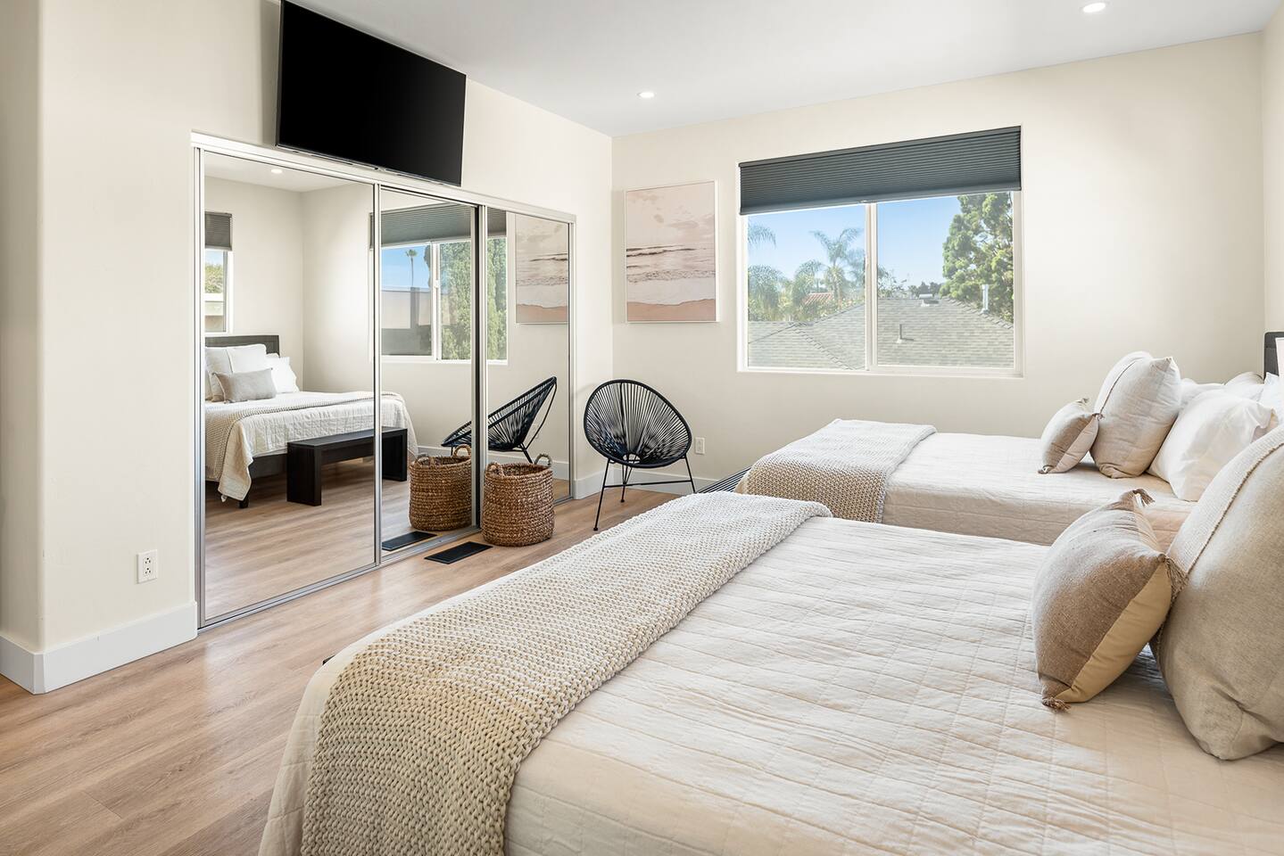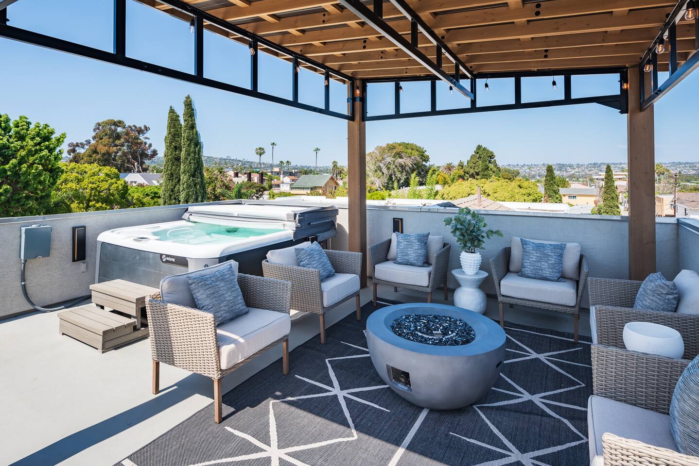 Located in the heart of Pacific Beach, this modern beach house has been fully remodeled and thoughtfully designed for your ultimate comfort and entertainment. *Private Rooftop Retreat w/BBQ, 6 Person Hot Tub, Fire Pit *AC *Voice Controlled Sound System, 4K TVs in every room *Beautiful bathrooms *Bikes, boards, beach towels and toys *Walk to coffee, yoga & gyms, dining, entertainment, shopping *Dedicated Parking Enjoy the blend of modern amenities and beachside relaxation in this vacation home