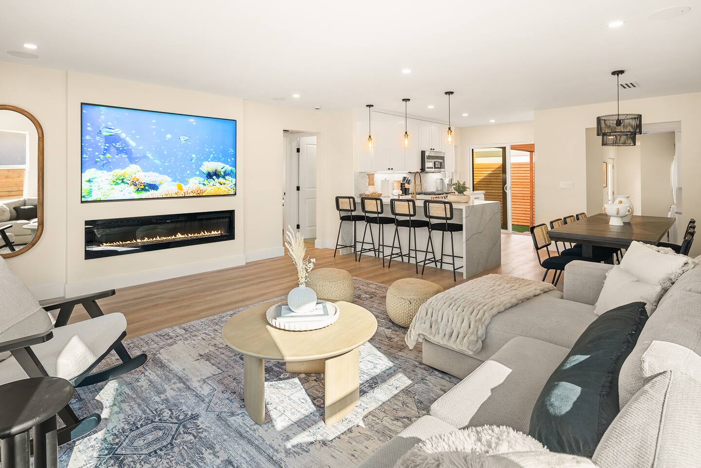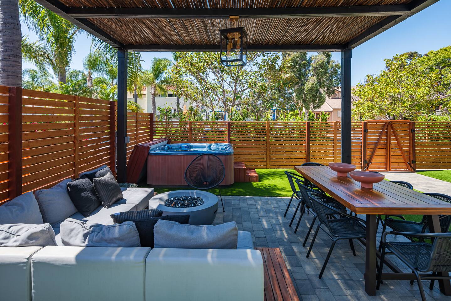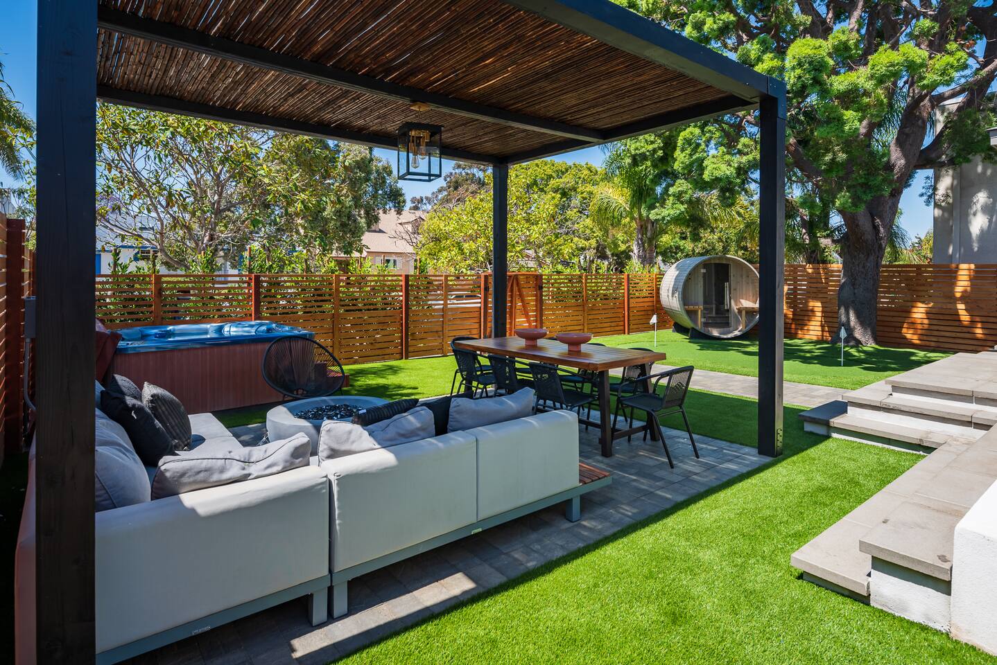 Located in the heart of Pacific Beach, this 5-bedroom modern beach house has been completely remodeled and re-imagined to make your stay unforgettable. Designed with comfort and entertainment in mind. *Private Outdoor Retreat w/BBQ, 6 Person Hot Tub, Fire Pit, Sauna *Central AC *Sound System, 85" TV Fam Room and TV's in every room *3 Beautiful bathrooms *Bikes, boards, beach towels and toys *Walk to the Beach/Bay, yoga & gyms, dining, entertainment, shopping!