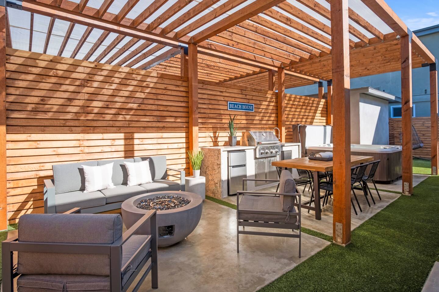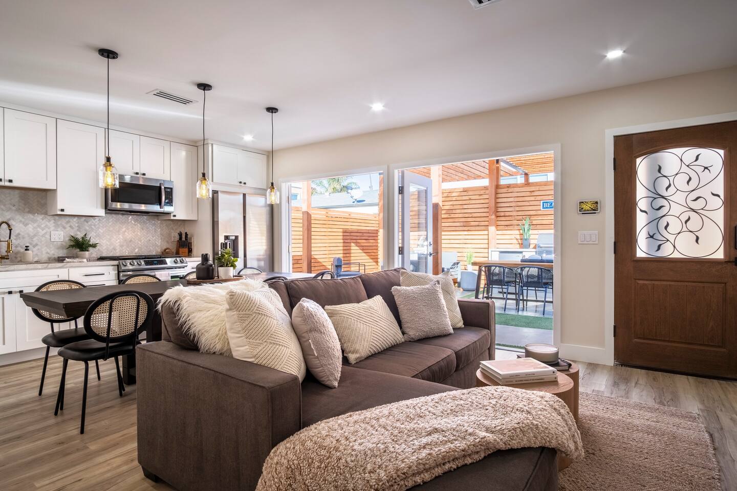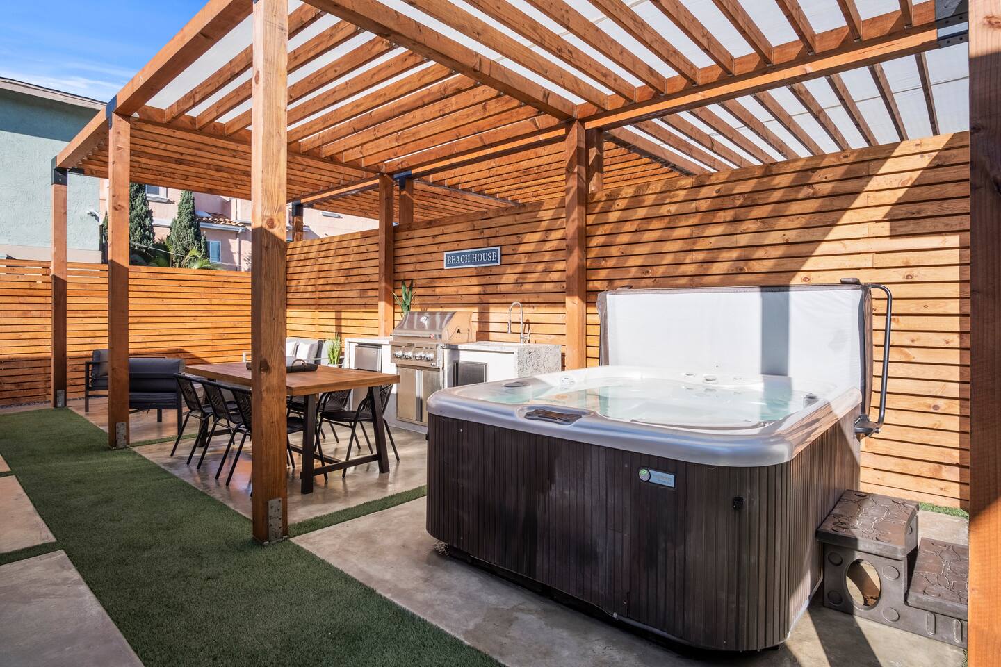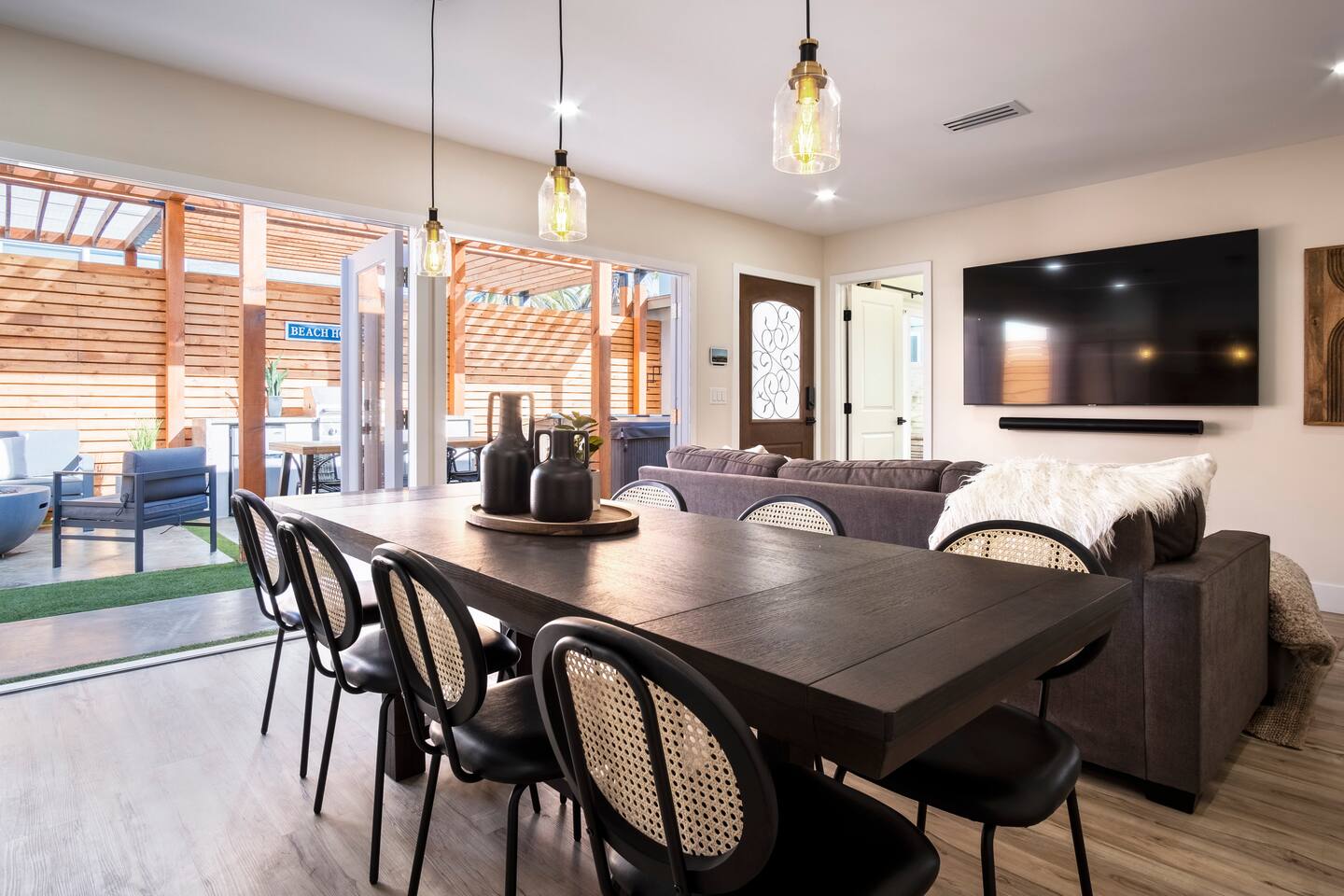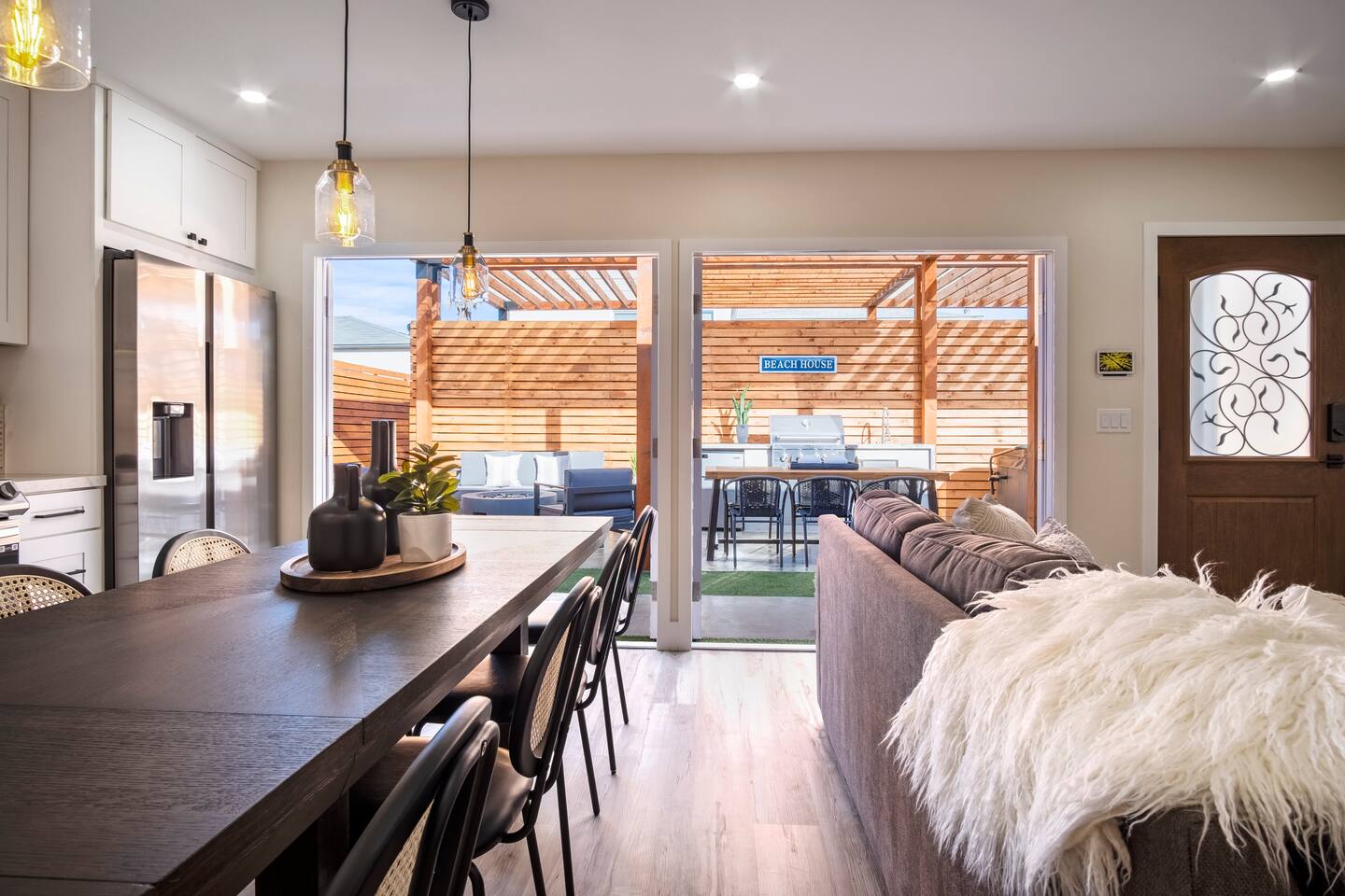 Located in the heart of Pacific Beach, this modern beach house has been completely remodeled and re-imagined to make your stay unforgettable. Designed with the eye toward comfort and entertainment. *Private Outdoor Retreat w/ Kitchen, 6 Person Hot Tub, Fire Pit *Central AV *Voice Controlled Sound System, 4K TVs in every room *Beautiful bathrooms *Bikes, boards, beach towels and toys *Walk to coffee, yoga & gyms, dining, entertainment, shopping!
