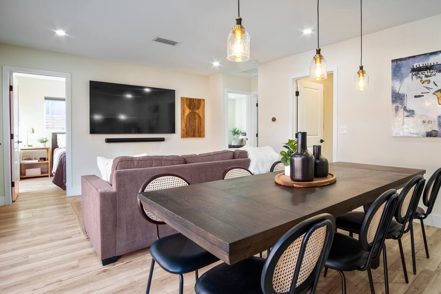 *Walk-through and aerial video available on YouTube by @casasdiego entering on the search bar. Check it out! 2 PRIVATE PARKING SPOTS FAMILY ROOM / DINNING - 75in 4K TV and SONOS sound system loaded with Netflix and Cable YouTube TV - Large French doors opens up to outdoor living area giving an open layout great for entertainment - Dinning Table w/ seating for 8 people KITCHEN Modern and open layout with stone counters, white wood cabinetry, brand new stainless kitchen appliances, bar seating. This is a fully stocked kitchen, with everything you need to cook great meals! Comes with: -Plenty of Pots/Pans/Platters -Keurig K-Elite Coffee Maker -Serving utensils -Grilling tongs -Full set of chef knives -Dishwasher, oven, microwave, toaster -Almost any condiment you need! We keep the fridge and pantry stocked with olive oil, butter, salt, pepper, hot sauce, BBQ sauce, mustard, ketchup, mayo, spices etc. LAUNDRY -Top of the line Samsung Washer and Dryer -Sunbeam Steam Iron, Laundry Soup, Fabric Softer and Iron Table OUTDOOR AREA -Outdoor Kitchen with Built in Natural Gas BBQ, Refrigerator, Sink and Grilling Tools -6 person Hot Tub / Jacuzzi / Spa -Stone Natural Gas Fire Pit with seating, perfect for night gatherings BEDROOMS Room 1 (Master Bed w/ Bathroom) : -King Size bed with premium pressure-relieving memory foam and high-density aerated cool gel, combined to provide the essential support and comfort for a deeper night's sleep = Super Comfortable! - Sliding doors opens up to outdoor living area giving an open layout great for entertainment -A/C in every room - 50in 4K TV loaded with Cable TV App, Netflix, YouTube, Pandora and more - Oak Hardwood flooring, recessed LED dimmable lighting, curtains and beautifully decorated - Desk / work station Room 2: -Queen Size bed with premium pressure-relieving memory foam and high-density aerated cool gel, combined to provide the essential support and comfort. -A/C in every room - 50in 4K TV loaded with Cable TV App, Netflix, YouTube, Pandora and more - Oak Hardwood flooring, recessed LED dimmable lighting, curtains and beautifully decorated Room 3: -King Size bed with premium pressure-relieving memory foam and high-density aerated cool gel. -A/C in every room - 50in 4K TV loaded with YouTube TV, Netflix, YouTube, Pandora and more - French doors opens up to outdoor living area giving an open layout great for entertainment - Oak Hardwood flooring, recessed LED dimmable lighting, curtains and beautifully decorated