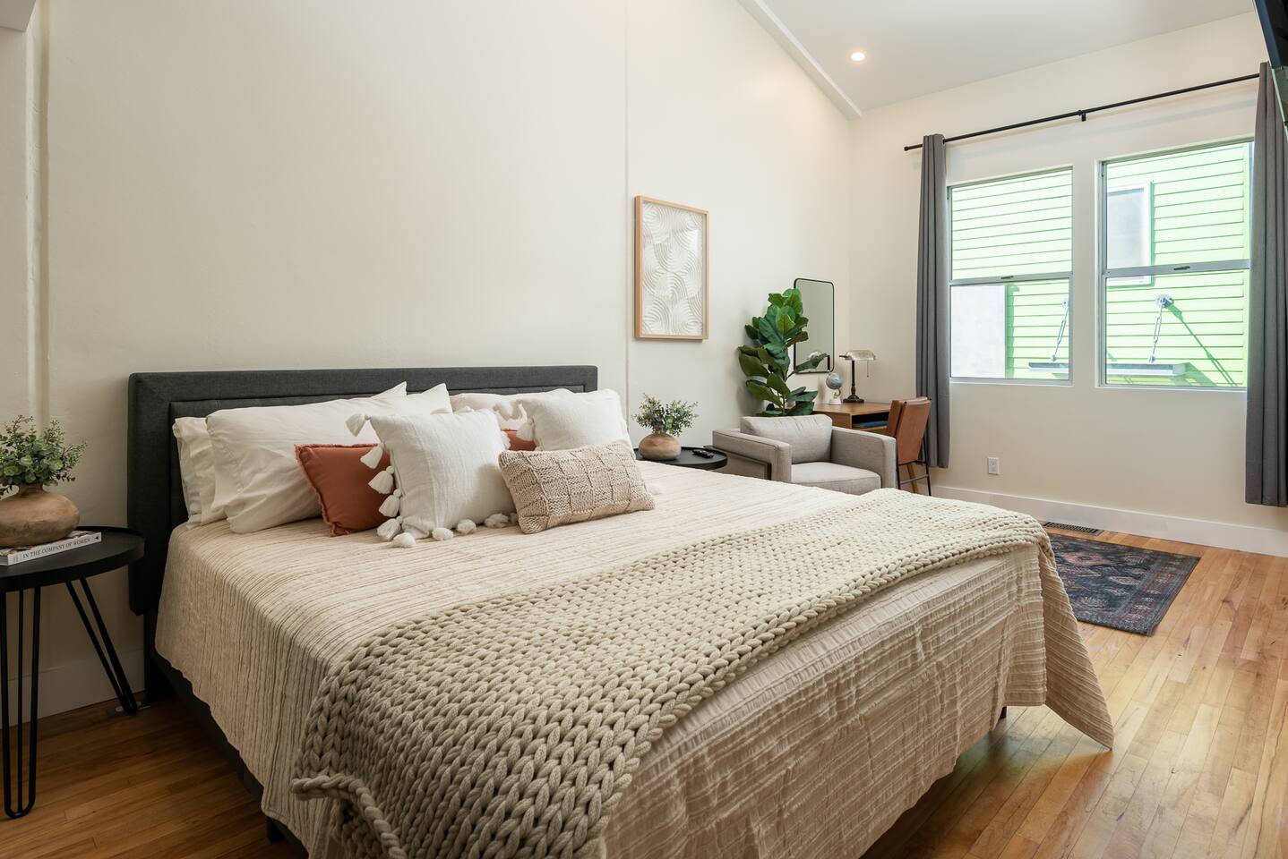 **PLEASE SEE PICS AND READ THE DESCRIPTION ABOUT BEDROOM 3 BEFORE BOOKING** *Walk-through and aerial video available on YouTube by entering @casasdiego on the search bar. Check it out! 1 PRIVATE ATTACHED GARAGE W/ 1 PARKING SPOT FAMILY ROOM / DINNING - Super high ceilings - 26 ft - 85in 4K TV and SONOS sound system loaded with Cable TV, Netflix, YouTube, Pandora and more - Dinning room table seats 6 - Kitchen bar seating with 5 bar stools KITCHEN Modern and open layout with stone counters, white wood cabinetry, brand new stainless kitchen appliances, bar seating. This is a fully stocked kitchen, with everything you need to cook great meals! Comes with: -Plenty of Pots/Pans/Platters -Keurig K-Elite Coffee Maker -Serving utensils -Grilling tongs -Full set of chef knives -Dishwasher, oven, microwave, toaster -Almost any condiment you need! We keep the fridge and pantry stocked with olive oil, butter, salt, pepper, hot sauce, BBQ sauce, mustard, ketchup, mayo, spices etc. LAUNDRY - Large Washer and Dryer -Sunbeam Steam Iron, Laundry Soup, Fabric Softer and Iron Table BEDROOMS Room 1: -Quemm Size bed with premium pressure-relieving memory foam and high-density aerated cool gel, combined to provide the essential support and comfort for a deeper night's sleep = Super Comfortable! -A/C in every room - 50in 4K TV loaded with Cable TV App, Netflix, YouTube, Pandora and more - Oak Hardwood flooring, recessed LED dimmable lighting, curtains and beautifully decorated Room 2 (Master Bed w/ Bathroom): -King Size bed with premium pressure-relieving memory foam and high-density aerated cool gel, combined to provide the essential support and comfort for a deeper night's sleep = Super Comfortable! -A/C in every room - 50in 4K TV loaded with Cable TV App, Netflix, YouTube, Pandora and more - High ceilings, Oak Hardwood flooring, recessed LED dimmable lighting, curtains and beautifully decorated Room 3 / LOFT: **This room shares entrance with the master bedroom similar to hotel rooms (see pics). The are no wall dividing the two rooms. If you have any questions about it, please ask first before booking! -Queen Size bed with premium pressure-relieving memory foam and high-density aerated cool gel.