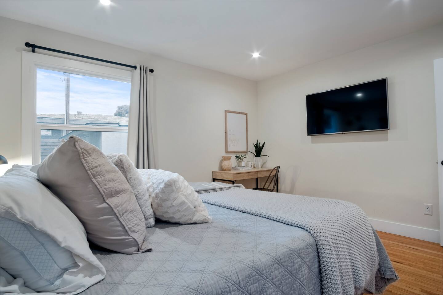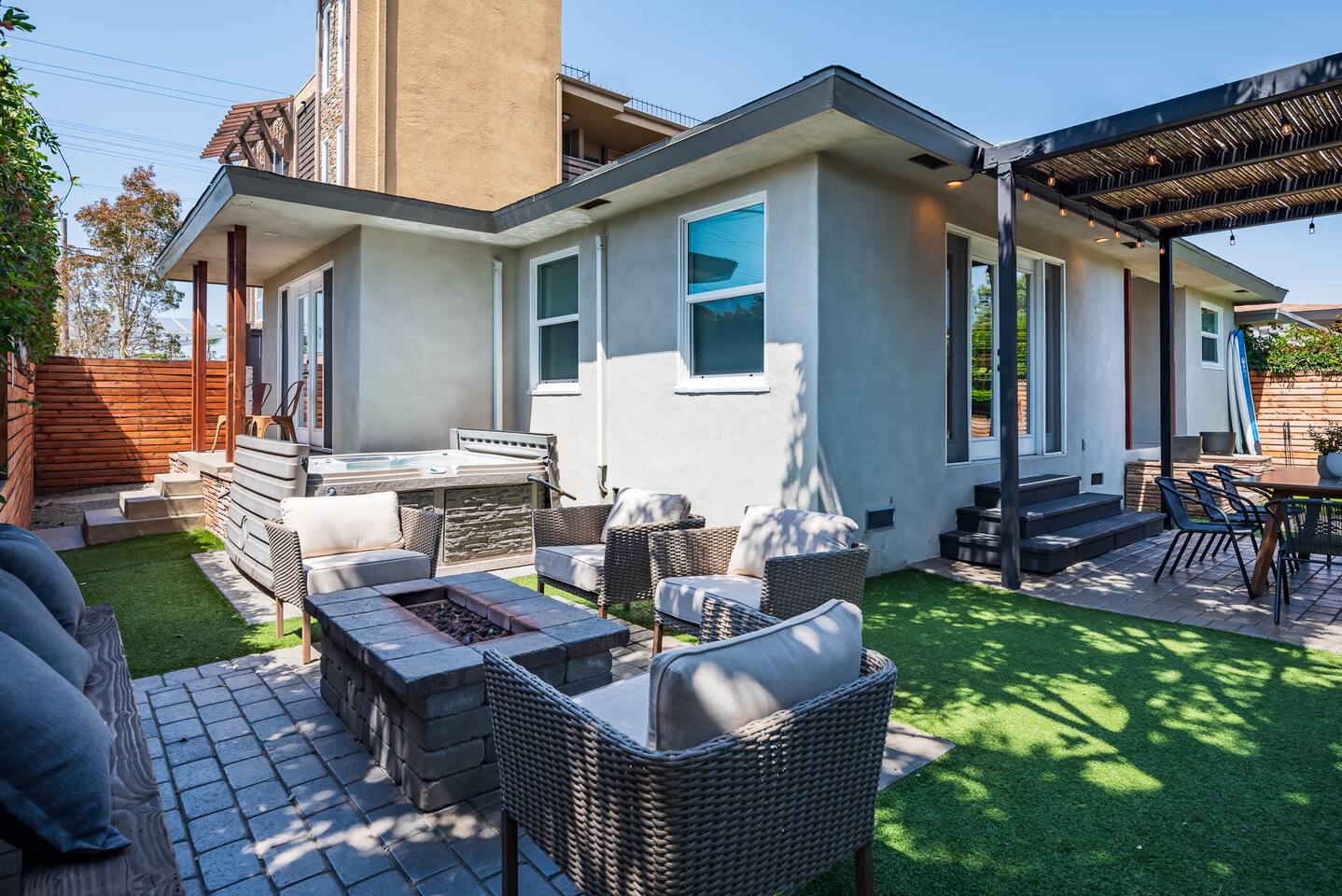 Located in the heart of Pacific Beach, this modern beach house has been completely remodeled and re-imagined to make your stay unforgettable. Designed with the eye toward comfort and entertainment. *Private Outdoor Retreat w/ Kitchen, 6 Person Hot Tub, Fire Pit *AC w/ independent temp control in each room *Voice Controlled Sound System, 4K TVs in every room *Beautiful bathroom w/ dual showers *Bikes, boards, beach towels and toys *Walk to coffee, yoga & gyms, dining, entertainment, shopping!