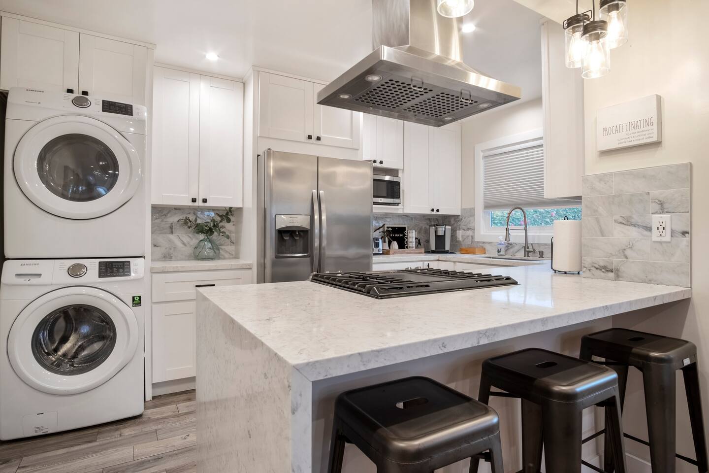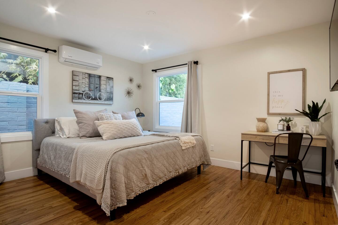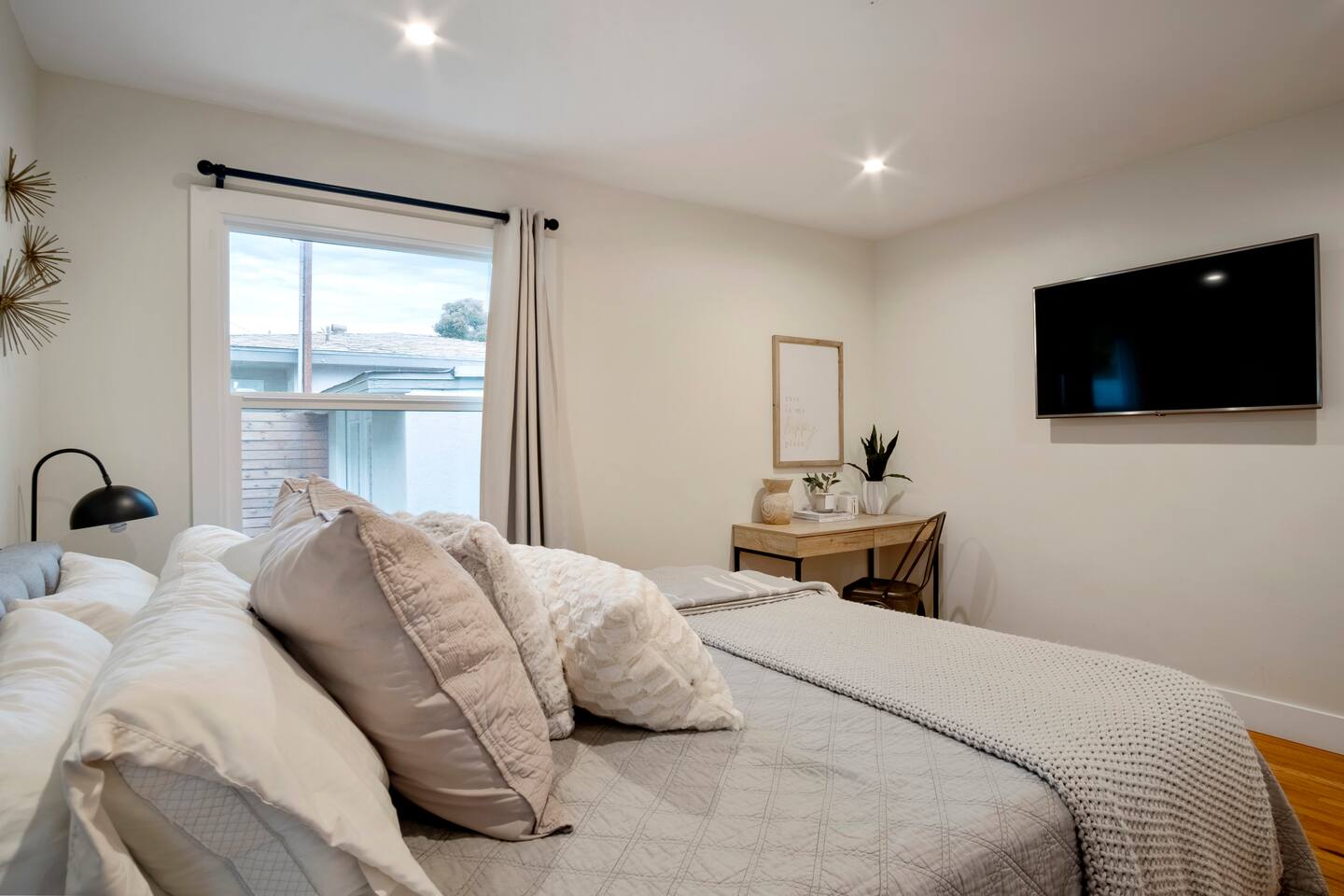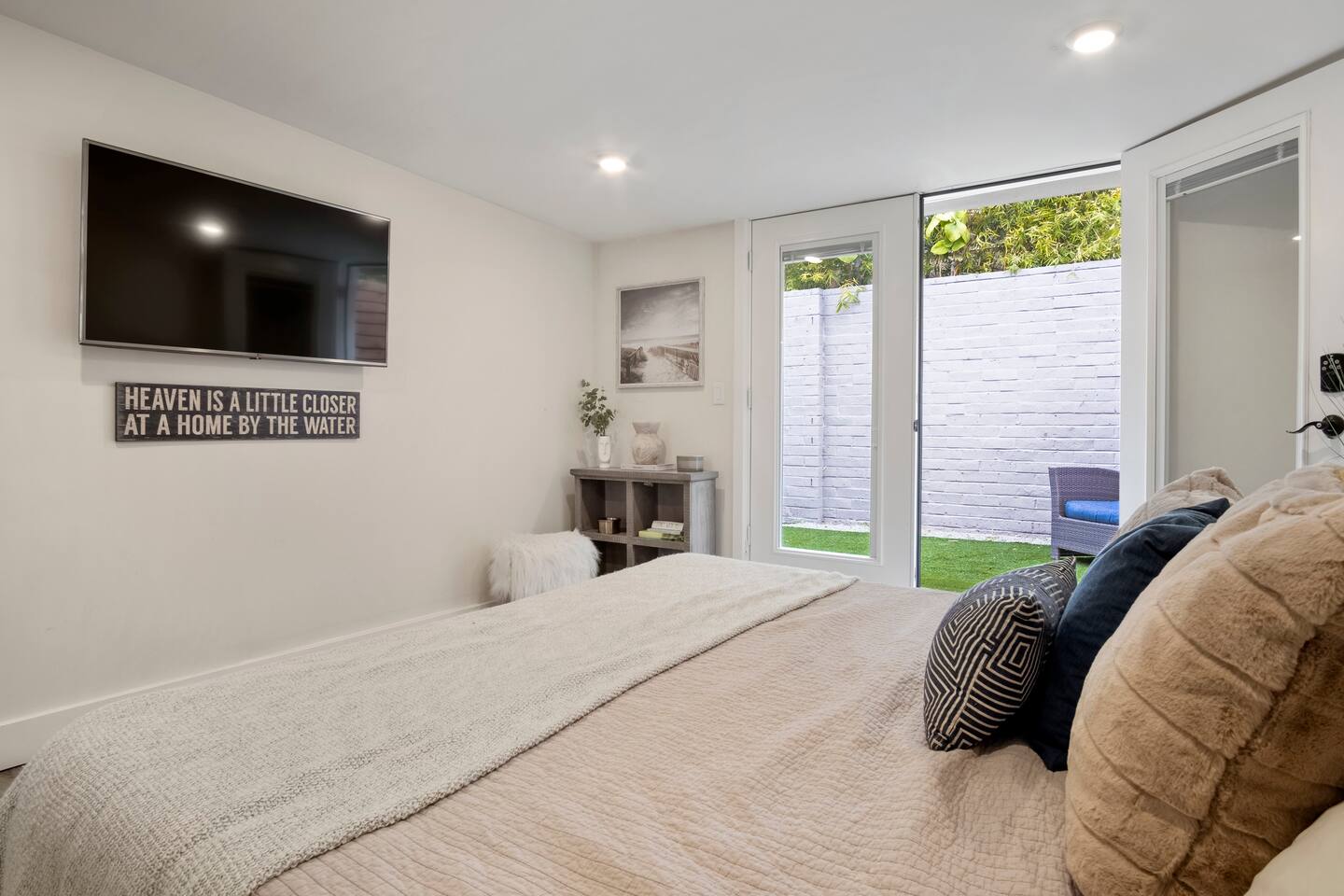 THIS HOME IS COMPLETELY DIALED IN *Walkthrough and aerial video available on YouTube by entering HslnbBNyC6E on the search bar. KITCHEN Modern and open layout with stone counters, white wood cabinetry, brand new stainless kitchen appliances, bar seating. This is a fully stocked kitchen, with everything you need to cook great meals! Comes with: -Plenty of Pots/Pans/Platters -Keurig K-Elite Coffee Maker -Serving utensils -Grilling tongs -Full set of chef knives -Dishwasher, oven, microwave, toaster -Almost any condiment you need! We keep the fridge and pantry stocked with olive oil, butter, salt, pepper, hot sauce, BBQ sauce, mustard, ketchup, mayo, spices etc. FAMILY ROOM / DINNING - 65in 4K TV and SONOS sound system loaded with Cable TV, Netflix, YouTube, Pandora and more - French doors opens up to outdoor living area giving an open layout great for entertainment - Dinning room table with seating 4-6 plus kitchen bar with 3 bar stools OUTDOOR AREA -Outdoor Kitchen with Built in Natural Gas BBQ, Refrigerator, Sink and Grilling Tools - Outdoor dining table with seating for 6 -5 person Hot Tub / Jacuzzi / Spa -Stone Natural Gas Fire Pit with seating, perfect for night gatherings BEDROOMS Room 1: -King Size bed with premium pressure-relieving memory foam and high-density aerated cool gel, combined to provide the essential support and comfort for a deeper night's sleep = Super Comfortable! -A/C – Split unit system which means you can control the temperature independently in each room - 50in 4K TV loaded with Cable TV App, Netflix, YouTube, Pandora and more - Desk / work station - Oak Hardwood flooring, recessed LED dimmable lighting, curtains and beautifully decorated Room 2: -Queen Size bed with premium pressure-relieving memory foam and high-density aerated cool gel, combined to provide the essential support and comfort for a deeper night's sleep = Super Comfortable! -A/C – Split unit system which means you can control the temperature independently in each room - 50in 4K TV loaded with Cable TV App, Netflix, YouTube, Pandora and more -Large French doors to balcony private balcony with lounge chair. Perfect for reading and relaxing - Oak Hardwood flooring, recessed LED dimmable lighting, curtains and beautifully decorated Room 3: Third bedroom is the overflow spot -or- what we call the "bonus room." The largest in the house, it has a private entrance and is not continuous with the main home, as you have to access it by leaving the front or kitchen door (see pics). If you have any questions about it, please ask first before booking! -King Size bed with premium pressure-relieving memory foam and high-density aerated cool gel, combined to provide the essential support and comfort for a deeper night's sleep = Super Comfortable! -A/C – Split unit system which means you can control the temperature independently in each room - 50in 4K TV loaded with Cable TV App, Netflix, YouTube, Pandora and more -Large French doors to balcony private balcony with lounge chair. Perfect for reading and relaxing - Hardwood flooring, LED dimmable lighting and beautifully decorated LAUNDRY -Top of the line Samsung Large Washer and Dryer -Sunbeam Steam Iron, Laundry Soup, Fabric Softer and Iron Table LOCATION The house is located in the heart of Pacific Beach, walking distance to the best it has to offer. Walk to: Beach 3.5 blocks / 0.3 miles or 7 min walk to the sand! Mission Bay 0.3 miles or 7 min walk Famous Garnet Ave – 1 block (where all the best restaurants, shops, groceries store, bars and gyms are located) Within 3 Blocks – Sprouts, Ralphs, 24 Hour Fitness, Crunch, Pacific Beach Library and many more Bike/ Short Drive to: SeaWorld - 3 miles Belmont Park – 2 miles Downtown - 13min drive (9 miles) San Diego Zoo - 15min drive (10 miles) SAN Airport - 13min drive (9 miles)