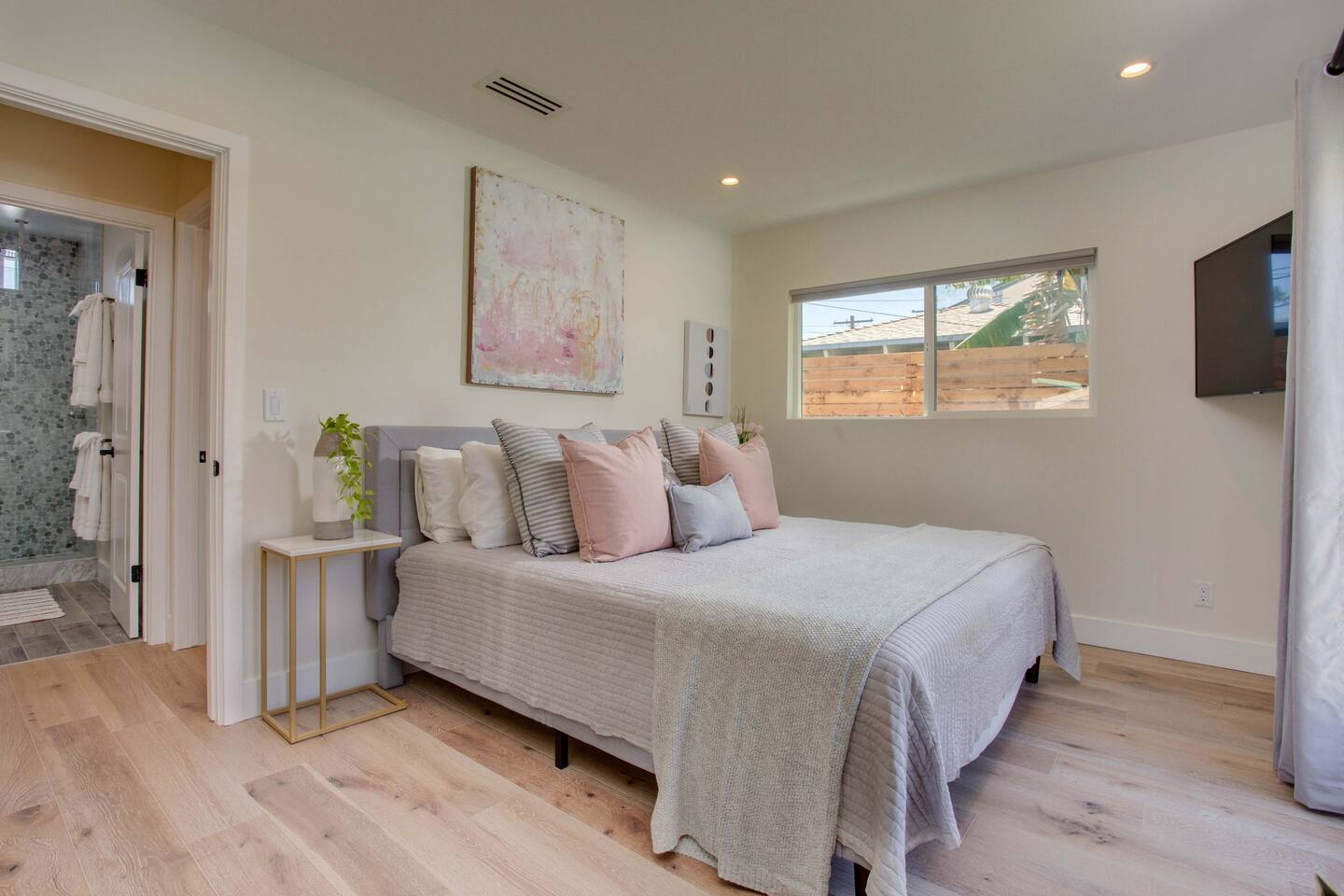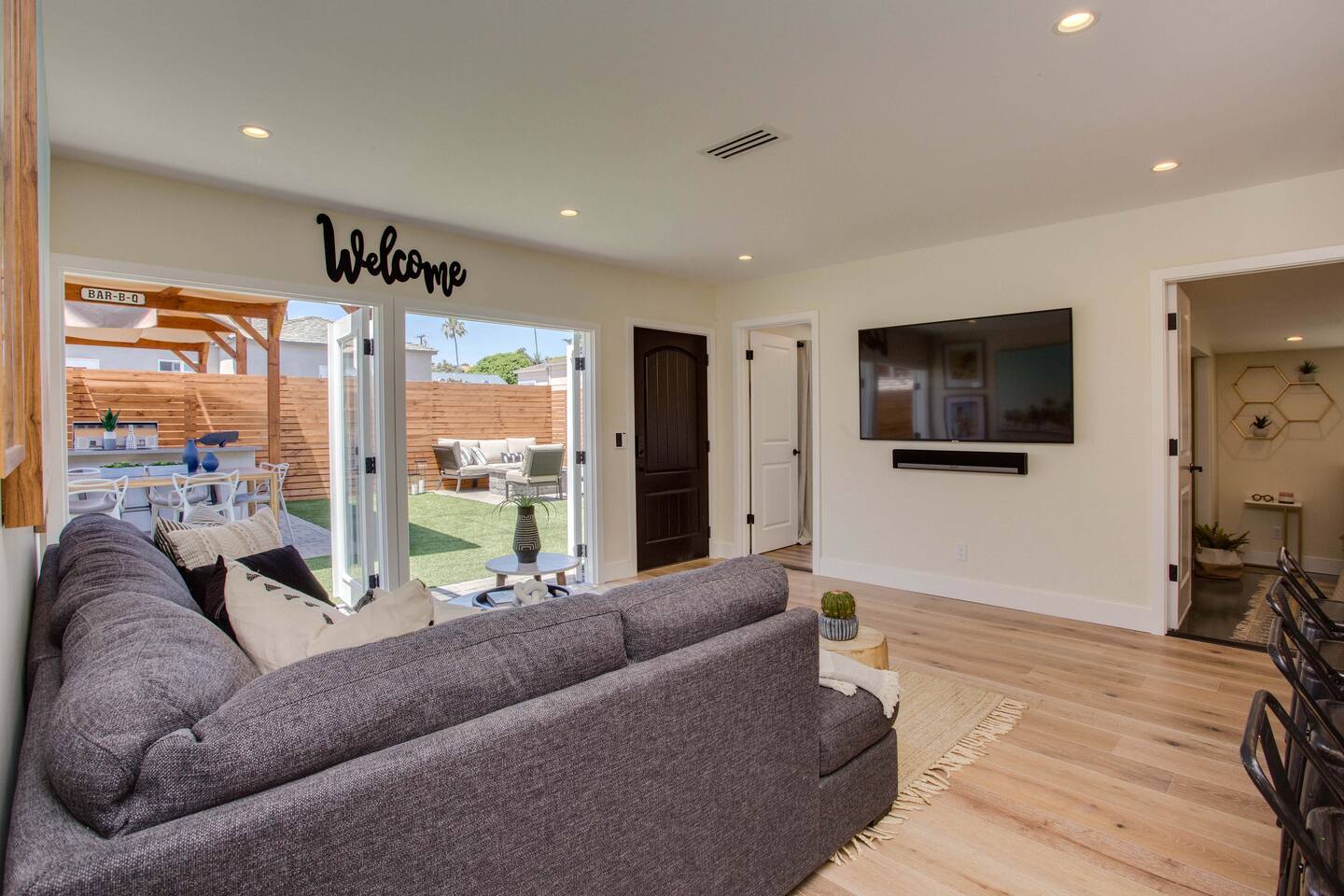 *Walk-through and aerial video available on YouTube by entering 9E8L0xs1jhE on the search bar. Check it out! 2 PRIVATE PARKING SPOTS FAMILY ROOM / DINNING - 65in 4K TV and SONOS sound system loaded with Cable TV, Netflix, YouTube, Pandora and more - French doors opens up to outdoor living area giving an open layout great for entertainment - Kitchen bar seating with 5 bar stools KITCHEN Modern and open layout with stone counters, white wood cabinetry, brand new stainless kitchen appliances, bar seating. This is a fully stocked kitchen, with everything you need to cook great meals! Comes with: -Plenty of Pots/Pans/Platters -Keurig K-Elite Coffee Maker -Serving utensils -Grilling tongs -Full set of chef knives -Dishwasher, oven, microwave, toaster -Almost any condiment you need! We keep the fridge and pantry stocked with olive oil, butter, salt, pepper, hot sauce, BBQ sauce, mustard, ketchup, mayo, spices etc. LAUNDRY -Top of the line Samsung Large Washer and Dryer -Sunbeam Steam Iron, Laundry Soup, Fabric Softer and Iron Table OUTDOOR AREA -Outdoor Kitchen with Built in Natural Gas BBQ, Refrigerator, Sink and Grilling Tools -4 person Hot Tub / Jacuzzi / Spa -Stone Natural Gas Fire Pit with seating, perfect for night gatherings BEDROOMS Room 1: -King Size bed with premium pressure-relieving memory foam and high-density aerated cool gel, combined to provide the essential support and comfort for a deeper night's sleep = Super Comfortable! - French doors opens up to outdoor living area giving an open layout great for entertainment -A/C in every room - 50in 4K TV loaded with Cable TV App, Netflix, YouTube, Pandora and more - Oak Hardwood flooring, recessed LED dimmable lighting, curtains and beautifully decorated Room 2: -Queen Size bed with premium pressure-relieving memory foam and high-density aerated cool gel, combined to provide the essential support and comfort for a deeper night's sleep = Super Comfortable! -A/C in every room - 50in 4K TV loaded with Cable TV App, Netflix, YouTube, Pandora and more - Oak Hardwood flooring, recessed LED dimmable lighting, curtains and beautifully decorated Room 3 (Master Bed w/ Bathroom): -King Size bed with premium pressure-relieving memory foam and high-density aerated cool gel, combined to provide the essential support and comfort for a deeper night's sleep = Super Comfortable! -A/C in every room - 50in 4K TV loaded with Cable TV App, Netflix, YouTube, Pandora and more - recessed LED dimmable lighting, curtains and beautifully decorated - Desk / work station Room 4 (Cozy!) -Queen Size bed with premium pressure-relieving memory foam and high-density aerated cool gel, combined to provide the essential support and comfort for a deeper night's sleep = Super Comfortable! -A/C in every room - 50in 4K TV loaded with Cable TV App, Netflix, YouTube, Pandora and more - French doors opens up to outdoor living area giving an open layout great for entertainment