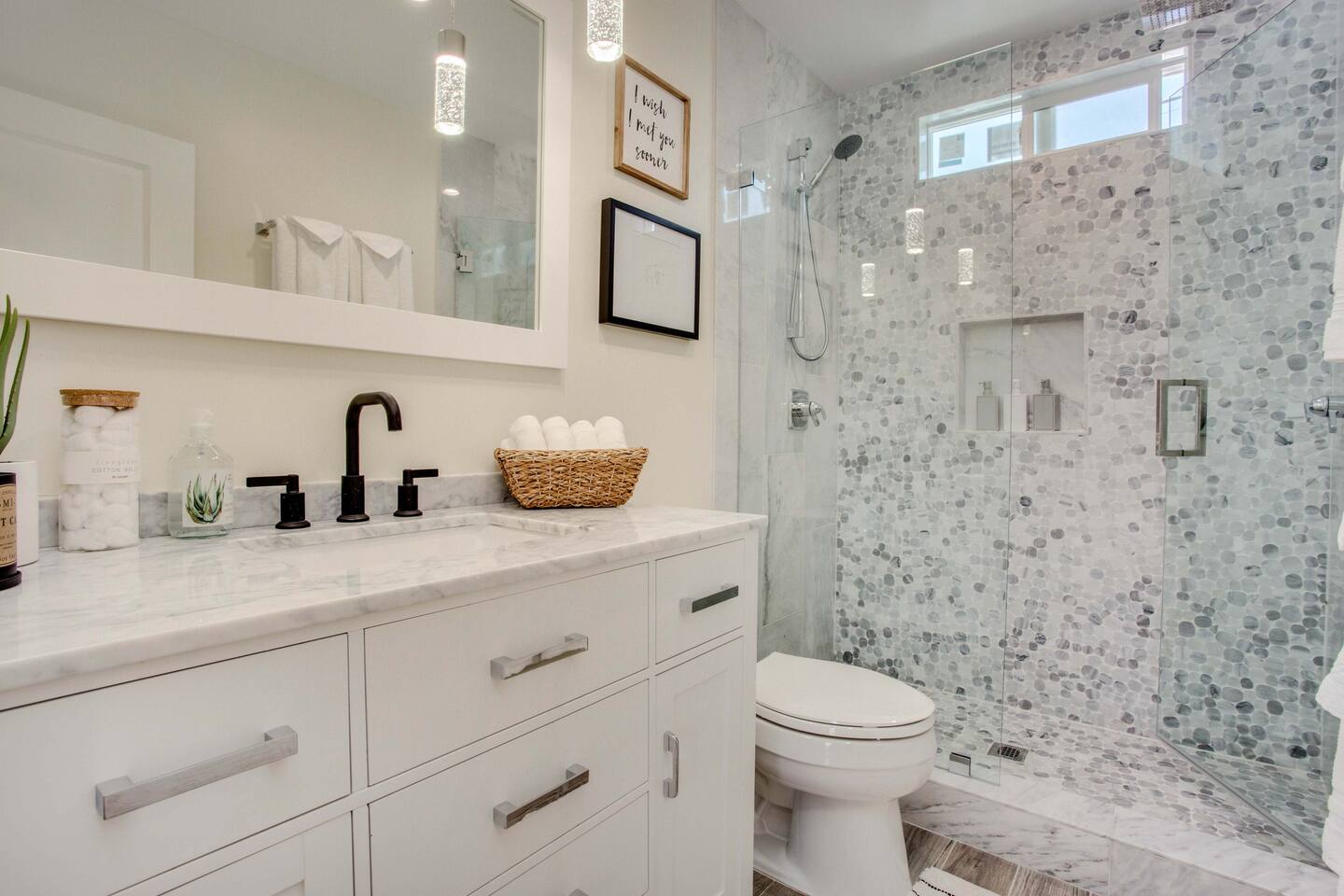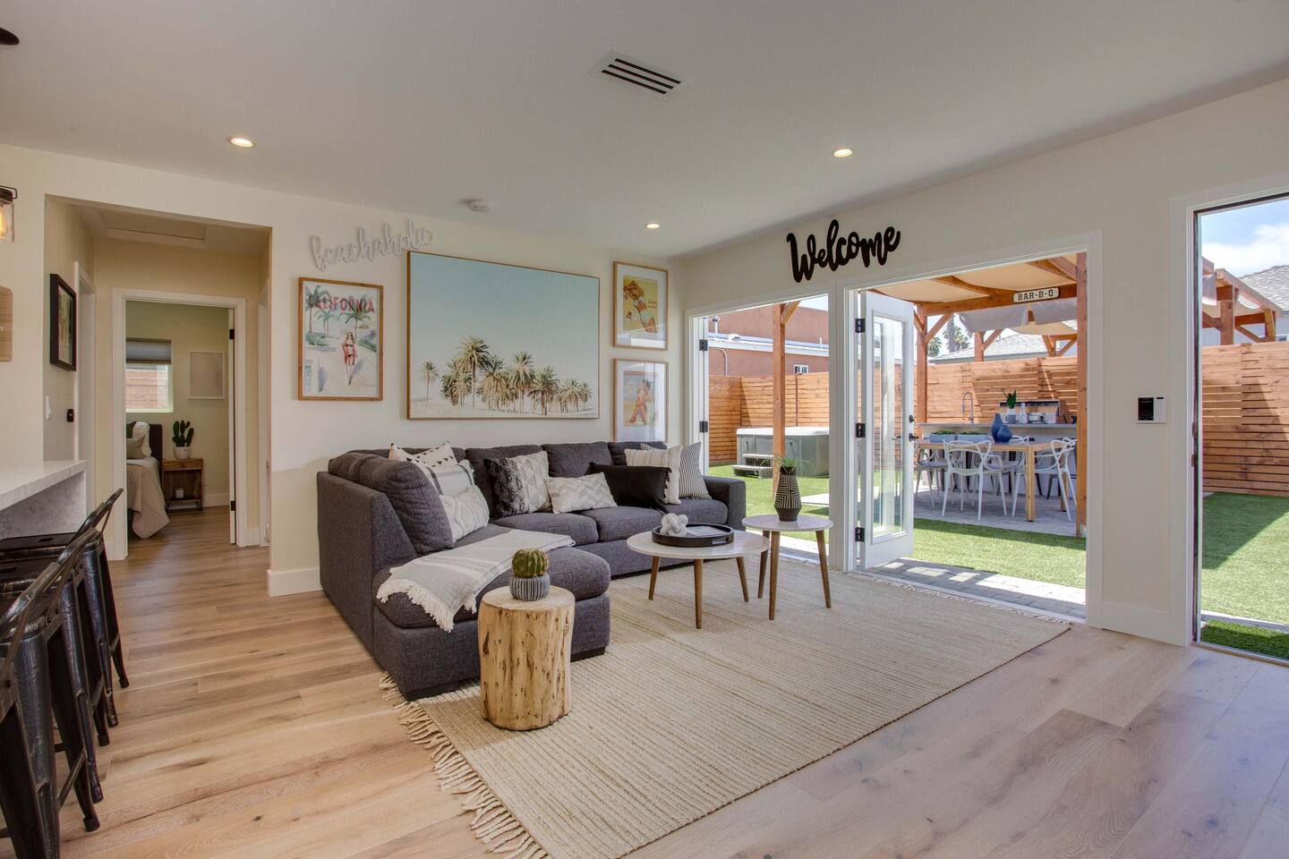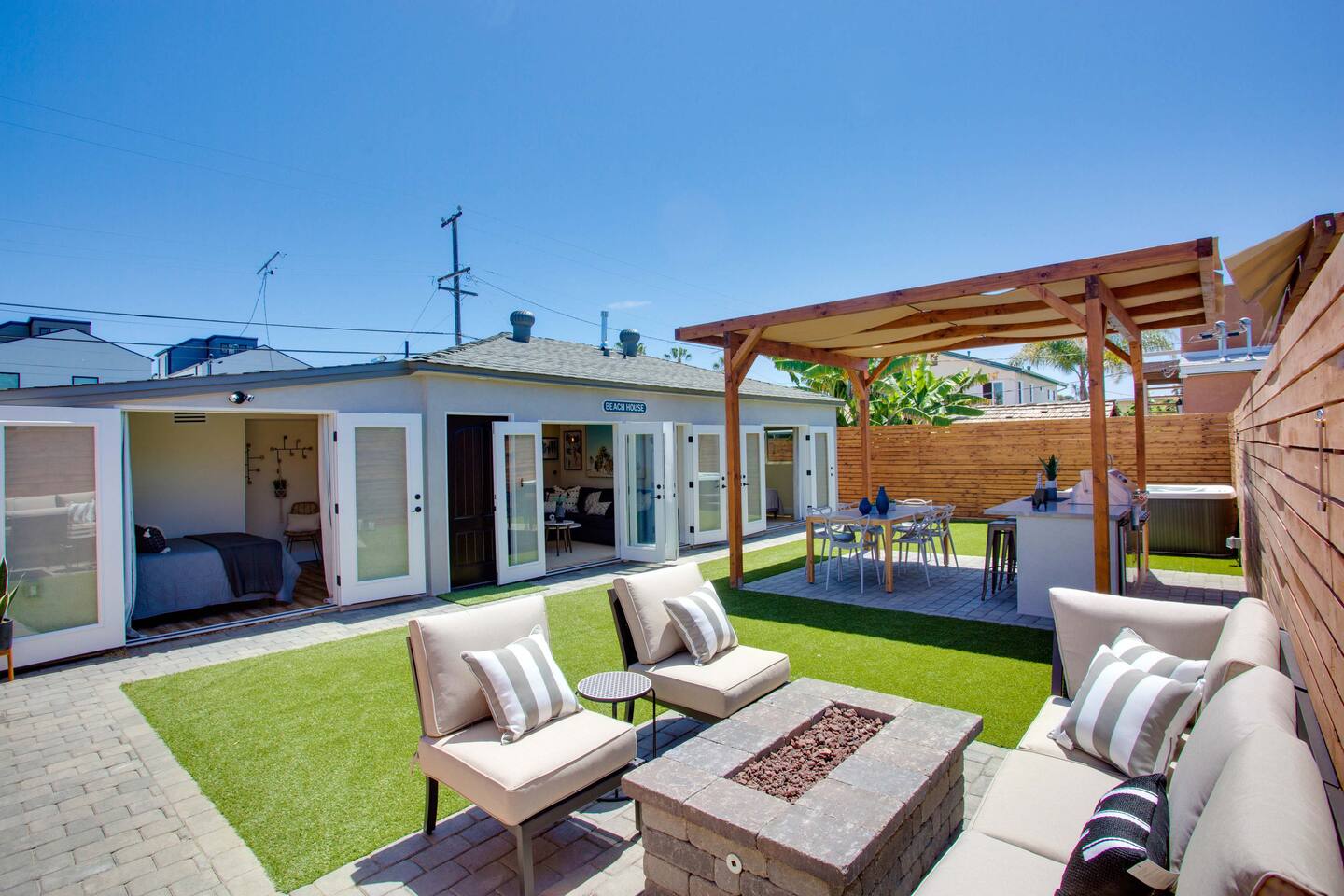 Located in North Pacific Beach and steps to La Jolla Bird Rock, this modern beach house has been completely remodeled and re-imagined to make your stay unforgettable. Designed with the eye toward comfort and entertainment. *Central AC *Private Outdoor Retreat w/ Kitchen, BBQ, 5 Person Hot Tub, Fire Pit *Sonos Sound System, smart control, 4K TVs in every room *Beautiful bathrooms w/ dual showers *Bikes, boards, beach towels and toys *Walk to coffee, yoga & gyms, dining, entertainment, shopping!