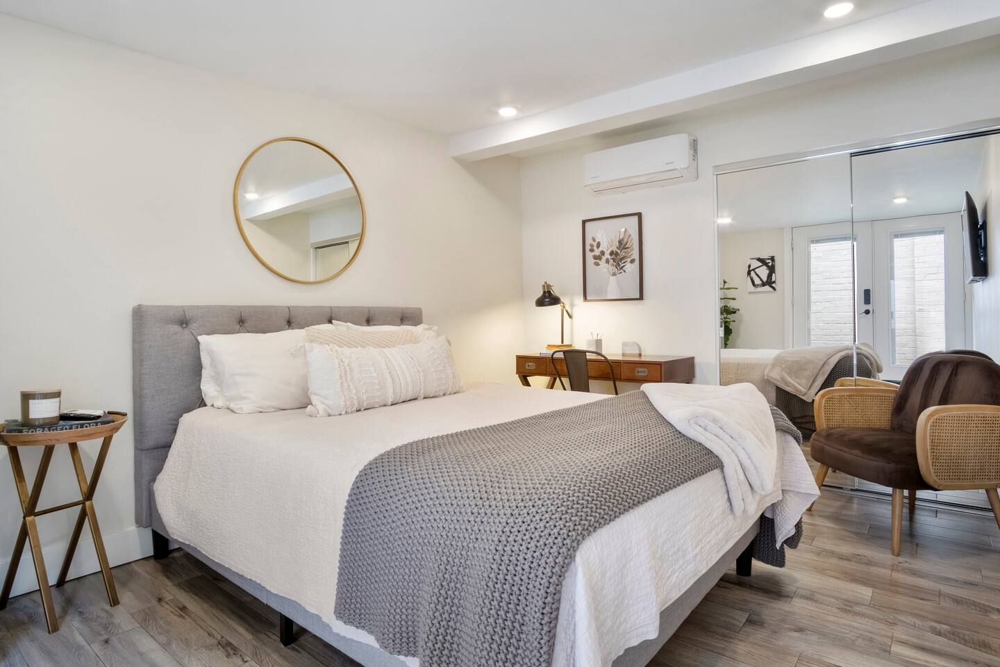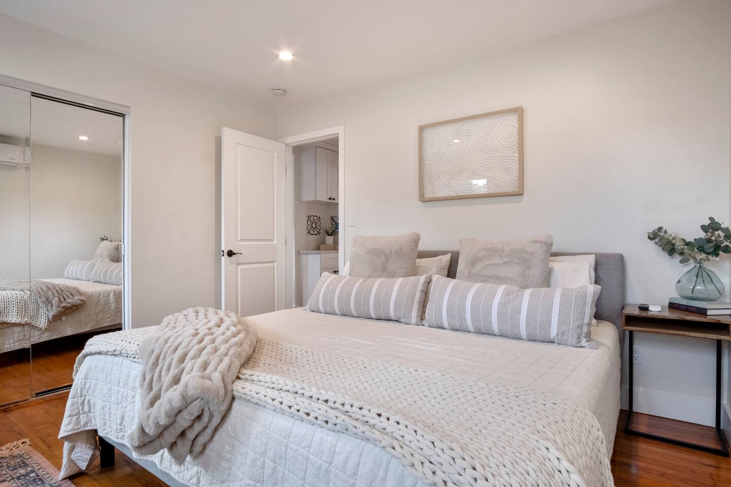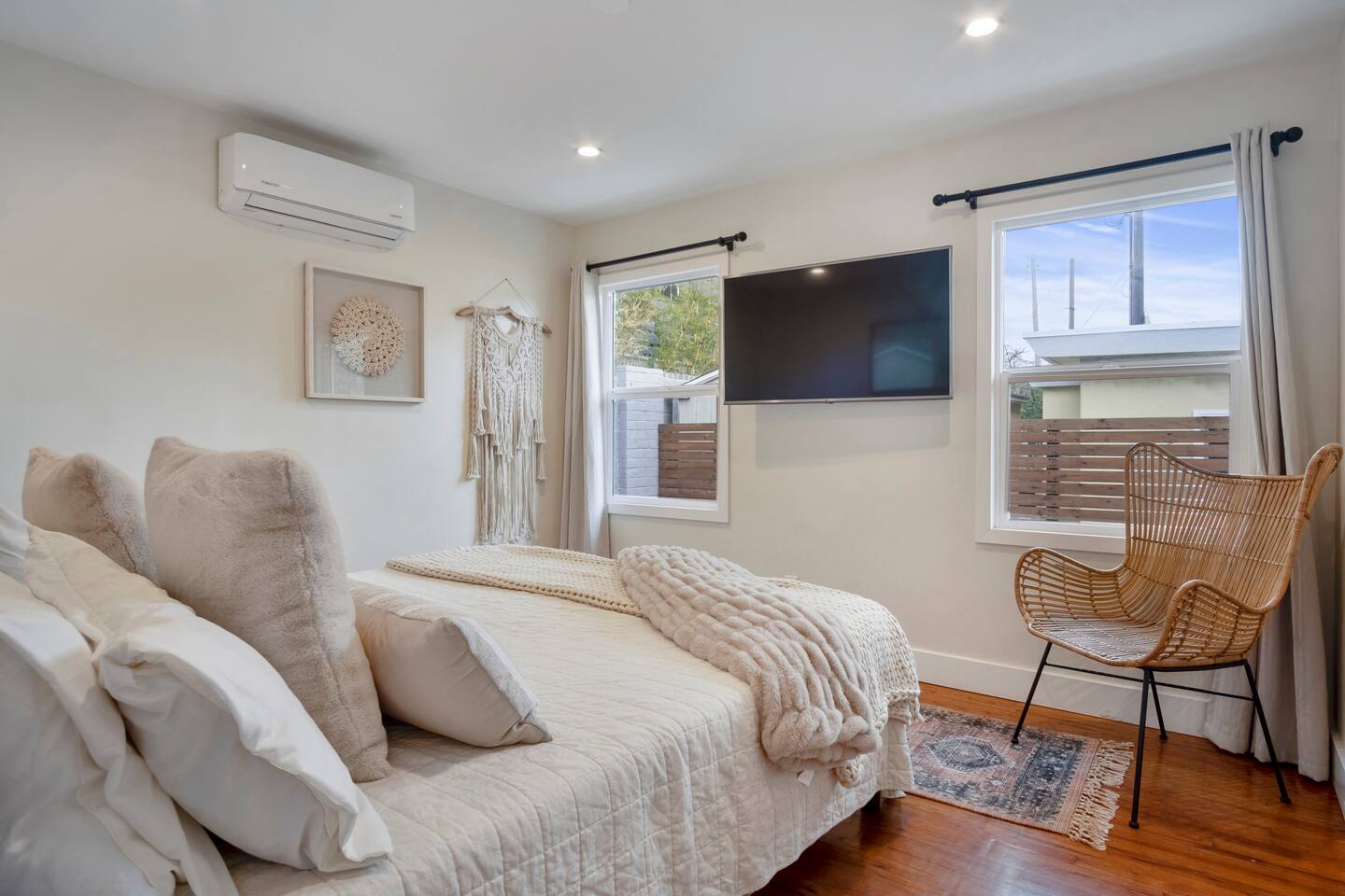 THIS HOME IS COMPLETELY DIALED IN *Walk-through and aerial video available on YouTube by entering @casasdiego on the search bar. FAMILY ROOM / DINNING - 55in 4K TV and SONOS sound system loaded with Cable TV, Netflix, YouTube, Pandora and more - French doors opens up to outdoor living area giving an open layout great for entertainment - Kitchen bar seating with 3 bar stools KITCHEN Modern and open layout with stone counters, white wood cabinetry, brand new stainless kitchen appliances, bar seating. This is a fully stocked kitchen, with everything you need to cook great meals! Comes with: -Plenty of Pots/Pans/Platters -Keurig K-Elite Coffee Maker -Serving utensils -Grilling tongs -Full set of chef knives -Dishwasher, oven, microwave, toaster -Almost any condiment you need! We keep the fridge and pantry stocked with olive oil, butter, salt, pepper, hot sauce, BBQ sauce, mustard, ketchup, mayo, spices etc. LAUNDRY -Top of the line Samsung Large Washer and Dryer -Sunbeam Steam Iron, Laundry Soup, Fabric Softer and Iron Table OUTDOOR AREA -Outdoor Kitchen with Built in Natural Gas BBQ, Refrigerator, Sink and Grilling Tools -4 person Hot Tub / Jacuzzi / Spa -Stone Natural Gas Fire Pit with seating, perfect for night gatherings BEDROOMS Room 1: -King Size bed with premium pressure-relieving memory foam and high-density aerated cool gel, combined to provide the essential support and comfort for a deeper night's sleep = Super Comfortable! -A/C – Split unit system which means you can control the temperature independently in each room - 50in 4K TV loaded with Cable TV App, Netflix, YouTube, Pandora and more - Oak Hardwood flooring, recessed LED dimmable lighting, curtains and beautifully decorated Room 2: -Queen Size bed with premium pressure-relieving memory foam and high-density aerated cool gel, combined to provide the essential support and comfort for a deeper night's sleep = Super Comfortable! - 50in 4K TV loaded with Cable TV App, Netflix, YouTube, Pandora and more -Large French doors to balcony private balcony with lounge chair. Perfect for reading and relaxing - Oak Hardwood flooring, recessed LED dimmable lighting, curtains and beautifully decorated Room 3: Third bedroom is the overflow spot -or- what we call the "bonus room." The largest in the house, it has a private entrance and is not continuous with the main home, as you have to access it by leaving the front or kitchen door (see pics). If you have any questions about it, please ask first before booking! -Queen Size bed with premium pressure-relieving memory foam and high-density aerated cool gel, combined to provide the essential support and comfort for a deeper night's sleep = Super Comfortable! -A/C – Split unit system which means you can control the temperature independently in each room - 50in 4K TV loaded with Cable TV App, Netflix, YouTube, Pandora and more -Large French doors to balcony private balcony. Perfect for reading and relaxing - Hardwood flooring, LED dimmable lighting and beautifully decorated - Desk / work station LOCATION The house is located in the heart of Pacific Beach, walking distance to the best it has to offer. Walk to: Beach 3.5 blocks / 0.3 miles or 7 min walk to the sand! Mission Bay 0.3 miles or 7 min walk Famous Garnet Ave – 1 block (where all the best restaurants, shops, groceries store, bars and gyms are located) Within 3 Blocks – Sprouts, Ralphs, 24 Hour Fitness, Crunch, Pacific Beach Library and many more Bike/ Short Drive to: SeaWorld - 3 miles Belmont Park – 2 miles Downtown - 13min drive (9 miles) San Diego Zoo - 15min drive (10 miles) SAN Airport - 13min drive (9 miles).