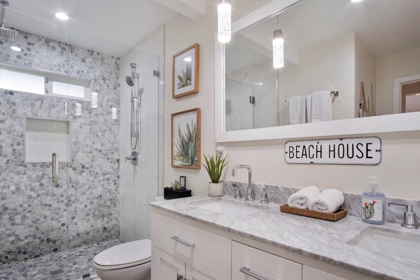 Located in the heart of Pacific Beach, this modern beach house has been completely remodeled and re-imagined to make your stay unforgettable. Designed with the eye toward comfort and entertainment. *Private Outdoor Retreat w/ Kitchen, 5 Person Hot Tub, Fire Pit *Putting Green Golf *AC w/ independent temp control *Sonos Sound System, 4K TVs in every room *Beautiful bathroom w/ dual showers *Bikes, boards, beach towels and toys *Walk to coffee, yoga & gyms, dining, entertainment, shopping!