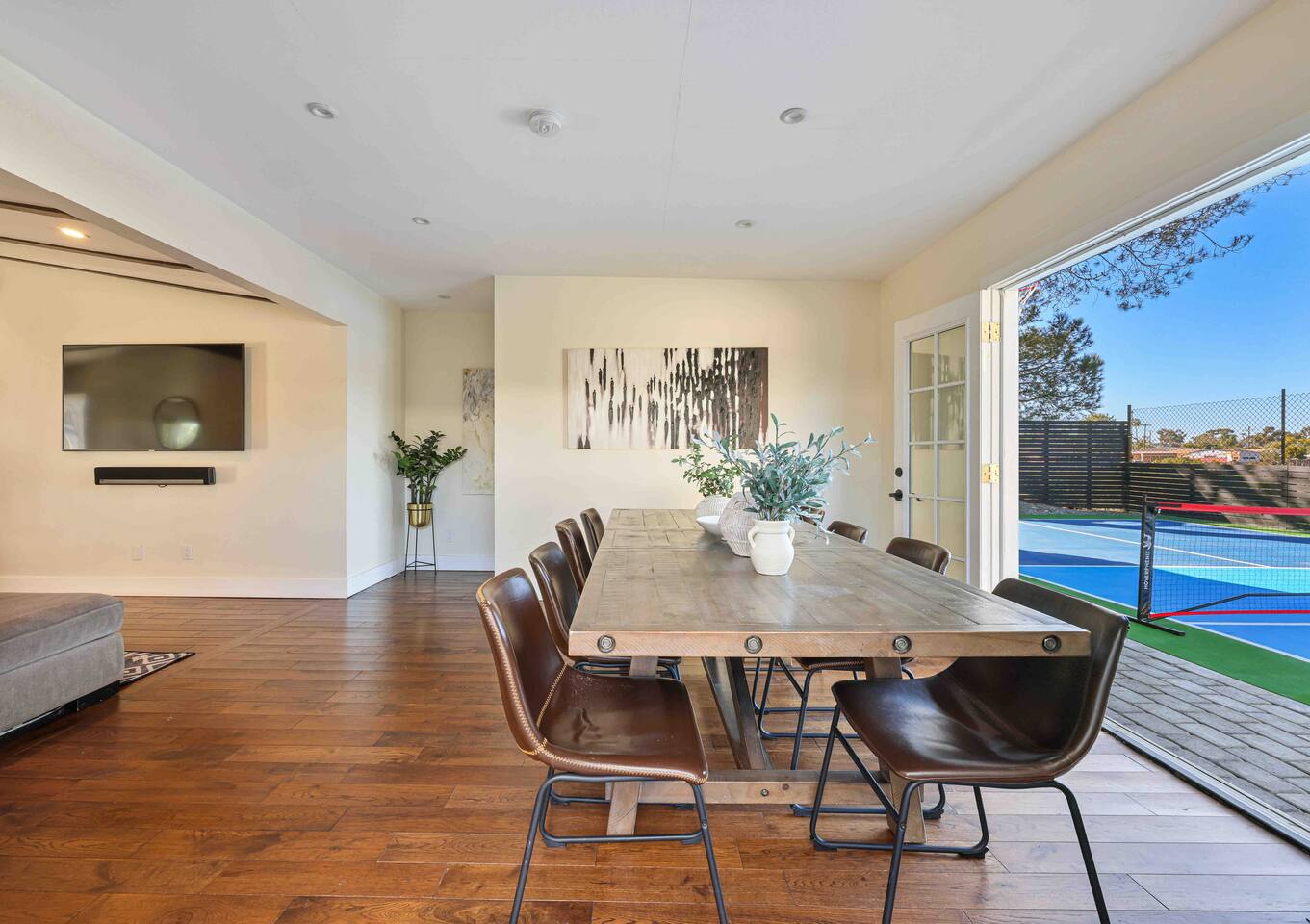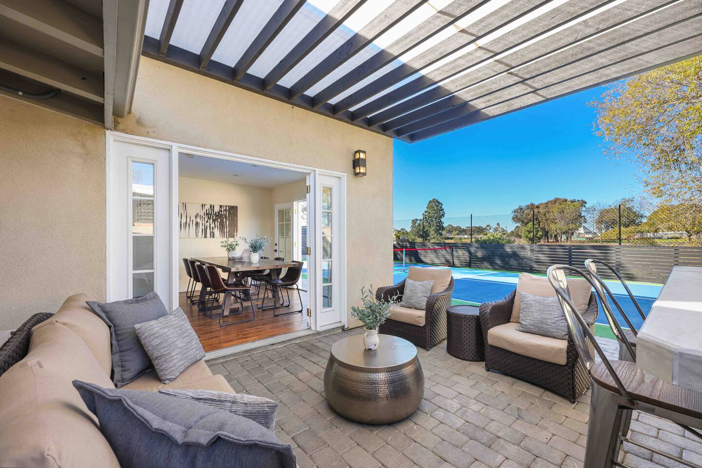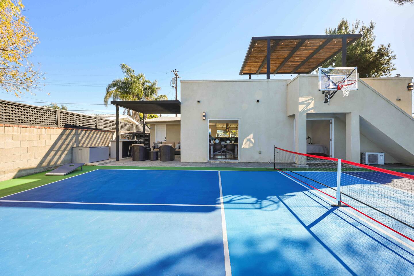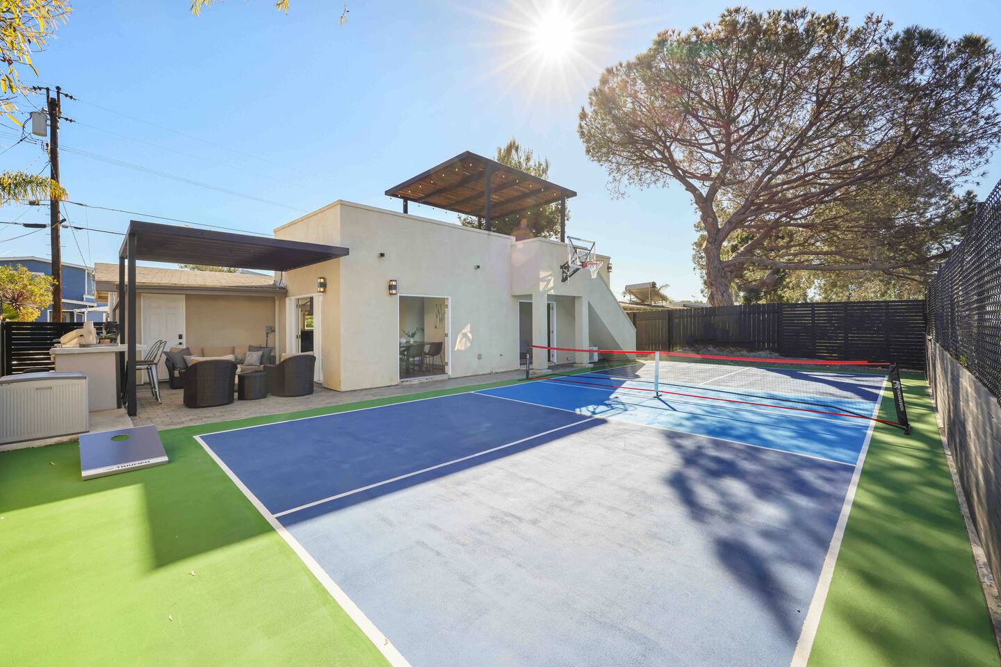 Located in the heart of San Diego, this stylish house has been completely remodeled and re-imagined to make your stay unforgettable. Designed with the eye toward comfort and entertainment. *Private Full Size Pickleball Court *Private Outdoor Retreat w/ BBQ, 4 Person Hot Tub, Fire Pit *A/C with independent temp control *4K TVs in every room *Voice Controlled Sound System *Master bathroom w/ dual showers and Tub *Walk to coffee, restaurants, entertainment, shopping!